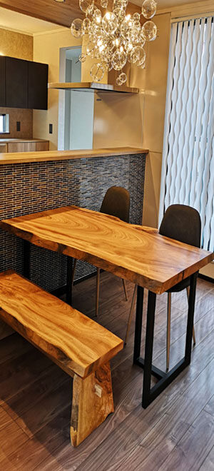 【総無垢造り家具製作】埼玉県さいたま市 一枚板ダイニングテーブル&一枚板ベンチセット