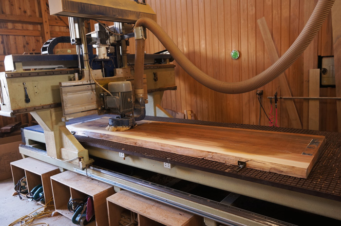 長さ3mの大きな一枚板、カウンターテーブ製作のご依頼をいただきましたまずは平面出しの削りからスタートしています。