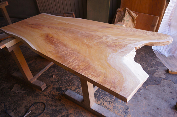 日光杉一枚板。ダイニングテーブル天板としてご利用頂きます。磨きももう終盤、いいものお届けします。